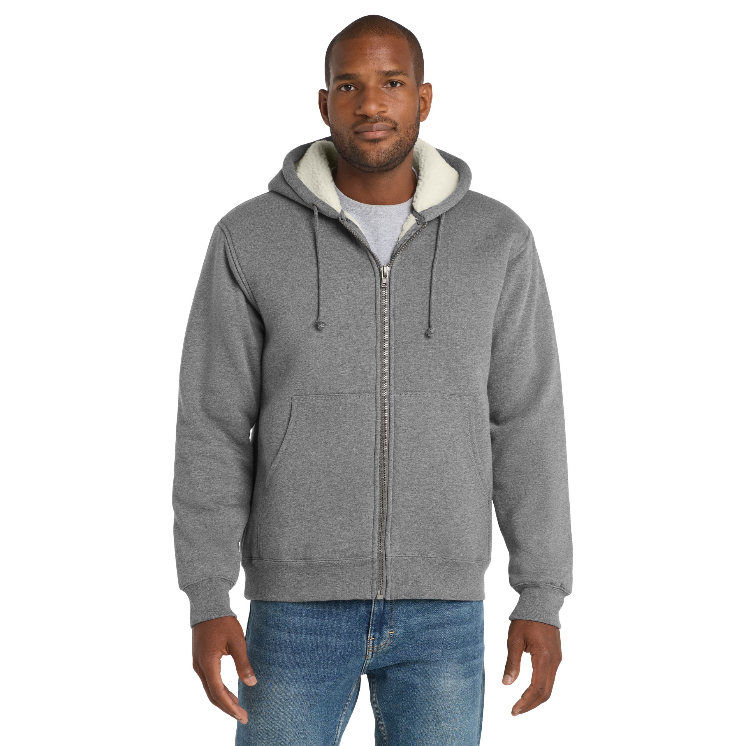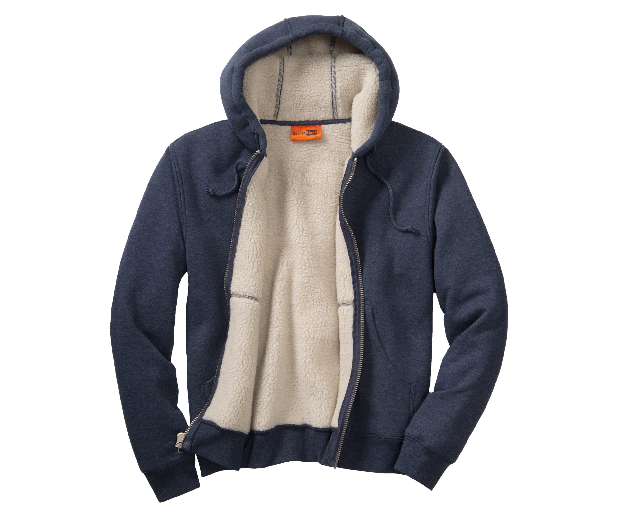 - 19.8-ounce, 53/47 cotton/poly fleece bonded to 100% polyester high-pile fleece
